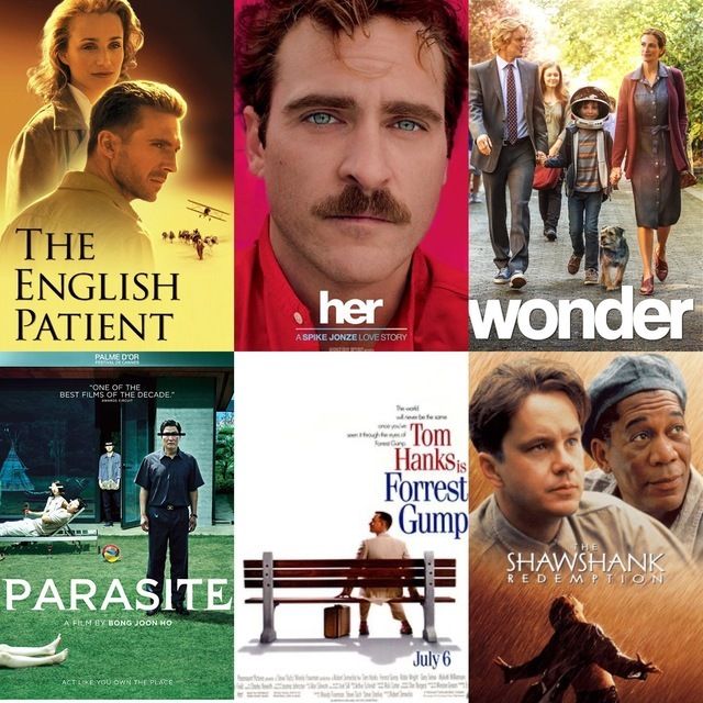 Forrest Gump There Will Be Blood Phantom Thread Cinema Paradiso Eternal Sunshine of the Spotless Mind The Shawshank Redemption parasite Her wonder The English patient Two lovers