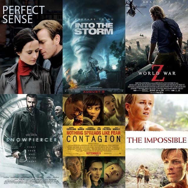 The Impossible Contagion into the storm Snowpiercer Edge of Tomorrow The perfect sense Mad Max: Fury Road World War Z Train to Busan 2012 I Am Legend