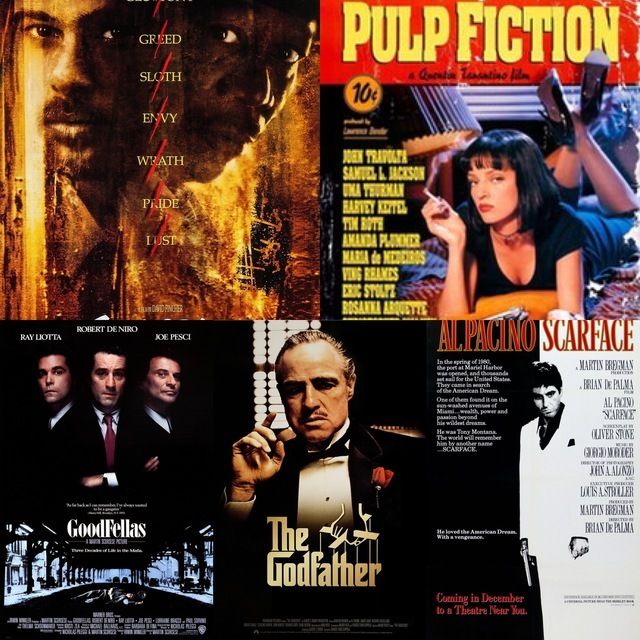 The Godfather trilogy The Silence of the Lambs Goodfellas Scarface Se7en Pulp fiction American History X وعن أفلام الدراما إذا كنتم من أصحاب القلوب الضعيفة احبسو دموعكم أثناء مشاهدتكم لتلك الأفلام: