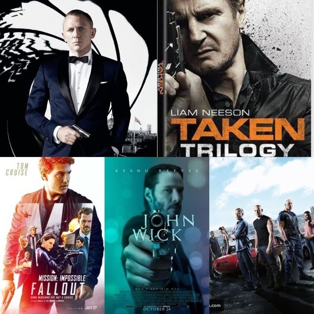سلسلة أفلام Fast and furious سلسلة أفلام John Wick سلسلة أفلام Mission: Impossible سلسلة أفلام Taken سلسلة أفلام Men in Black Skyfall Ford v. Ferrari Source Code The Commuter Thick as Thieves
