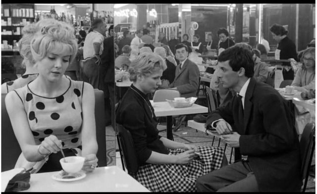 ضمن أولى المشاهد في الفيلم، مشهد جلوس كليو في أحد المقاهي وإلى جانبها حبيبان يتجادلان، حيث رسمت فاردا خطًا فاصلًا بحدود المرآة يؤسس لعالم كليو المنفصل، والذي يمتلئ بالبشر، لكنه لا يملأ الفراغ الروحي الذي تعيشه. هذا المشهد التأسيسي ستكتمل تعبيريته خلال أحداث الفيلم.