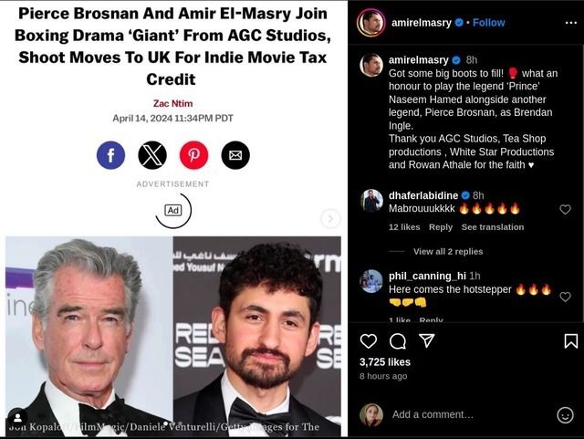 وكتب أمير المصري على حسابه الرسمي بمواقع التواصل الاجتماعي منشورًا على دوره: حصلت على شرف كبير يفوق توقعاتي، ويالله من شرف أن ألعب دور الأسطورة البرنس نسيم حميد، إلى جانب أسطورة أخرى بيرس بروسنان في دور بريندان إنجل.