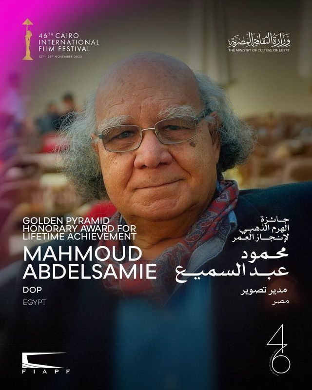 أعلن مهرجان القاهرة السينمائي الدولي تكريم المدير التصوير السينمائي الكبير محمود عبدالسميع بجائزة الهرم الذهبي لإنجاز العمر في دورته الـ46، التي تقام في الفترة من 12 إلى 21 نوفمبر 2025. اعترافًا بإسهاماته الكبيرة في عالم التصوير، بعشرات الأفلام التسجيلية والروائية التي أضافت عمقًا وثراءً للسينما المصرية