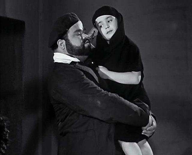 الطفلة فيروز فى لقطة من فيلم فيروز هانم يحملها الفنان حسن اتلة