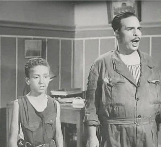الكوميديان عبدالفتاح القصري والطفل عادل عباس في لقطة من الفيلم