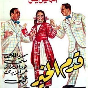 المزيدمرزوق سعيد(اسماعيل ياسين)صاحب تياترو سيئ الحظ، دائما يجد العضم فى الكرشة، ويعانى من سوء حظه، حتى هبط عليه صديقه المطرب اللبنانى إحسان (محمد سلمان) ليعرض عليه العمل معه بالتياترو،...اقرأ المزيد ولكن لم يخجل الحظ وينعدل، فلم يحضر العرض سوى متفرج واحد(عبدالغنى النجدى) معه دعوة، وانفرج الحال عندما جاءهم الثرى البخيل مسعود بيه الفنجرى (محمود المليجى) يطلب منهم احياء حفل عيد ميلاد ابنته سميحه (منى)، ويستضيف مرزوق صديقه احسان بمنزله الذى لم يدفع إيجاره، ولحظهما السيئ يموت ابراهيم الفنجرى شقيق مسعود بيه فألغيت الحفلة، ولكن مبروكة (شاديه) الخادمة التى كان يربيها المرحوم ابراهيم، حضرت لمنزل مسعود بيه، كما أوصاها مخدومها ابراهيم قبل موته، ولكن مسعود بيه وزوجته قمر (علويه جميل) وابنهما محسن (نور الدمرداش) طردوا مبروكة من المنزل للشارع، ليقابلها إحسان ومرزوق ويعرضان عليها العمل فى التياترو مطربة، وكانت مبروكة قدم الخير عليهما، ونجح التياترو وسددوا ديونهم، وأصبح حالهم عال العال، وأحب إحسان مبروكة وخطبها، ولكن جاء المحامى (عبدالبديع العربى)لتنفيذ وصية المرحوم ابراهيم والبحث عن مبروكة لأن الأوراق اثبتت انها إبنة ابراهيم الفنجرى والتى انجبها من زوجته إبنة ناظر عزبته التى تزوجها سرا، وقد أوصى بكل ثروته لصالح ابنته مبروكة وهى عبارة عن نصف مليون جنيه بالبنك، وألفين فدان، على ان تؤول الثروة لأبناءها، فإذا لم تنجب تؤول الثروة لعمها مسعود بيه، ولذلك كلّف مسعود خادمه عبده (رياض القصبجى) بالبحث عن مبروكة والتخلص منها، ولكن فشل عبده فى قتل مبروكة، فأحضرها للمنزل، ريثما يفكر لها فى مصيبة، وطلب منها عمها الإقامة بمنزله ومنعها من مقابلة احسان ومرزوق، وحاولت قمر هانم قتل مبروكة، بفتح شباك حجرة نومها ليلا، لتصاب بإلتهاب رئوى، ولكن ابنها الصايع محسن الذى حضر متأخرا ولم يجد مفتاح المنزل، قفز من الشباك المفتوح وأغلقه وراءه، وكانت سميحه مخطوبة لسمير عزت (عمرالحريرى) والذى انتهك عذريتها وحملت منه، ففسخ الخطبة بعد علمه بذهاب الثروة لمبروكة، وسمعت مبروكة الحديث، فقابلت سمير واشترته بمبلغ ١٠ آلاف جنيها، وأخذت منه إقرار بما فعل مع سميحه، وتعهده بالزواج منها خلال أسبوعين، كما سعى محسن لسرقة ابيه الذى منع عنه المصروف بسبب سهره بالكباريهات ولعبه القمار، ولكن والده ضبطه وطرده من المنزل، وفكر محسن فى قتل والده، ولكن مبروكة امدته بالمال الذى يحتاجه وأخذت منه المسدس، وقد أحضر مسعود بيه ثعبانا لقتل مبروكة ليلا، واختبأ تحت السرير عندما حضر احسان ومرزوق لإنقاذ مبروكة، ولكن الثعبان لدغ مسعود، وكاد يموت لولا ان مبروكة انقذته، وعاد مسعود لرشده واعترف لمبروكة بما فعل بها واستسمحها، ووافق على زواجها من إحسان. (قدم الخير)