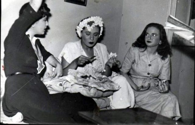 ثريا حلمى وشادية يتناولون وجبه الغداء فى راحة التصوير ومعهما كاميليا