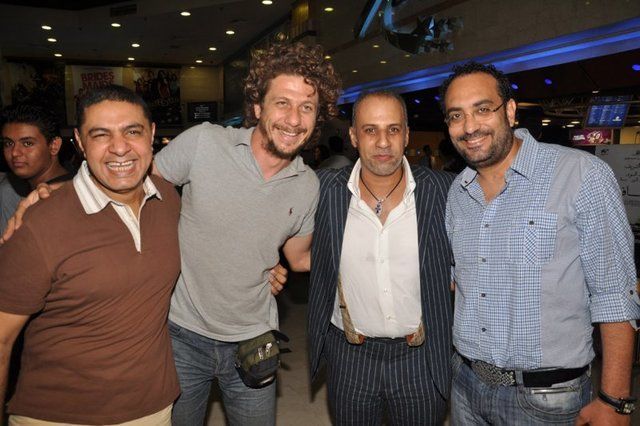 صورة تجمع المخرج أحمد ماهر واكرم فريد ونزار شاكر وهشام سليمان بالعرض الخاص لفيلم المسافر بسينما نايل سيتي.