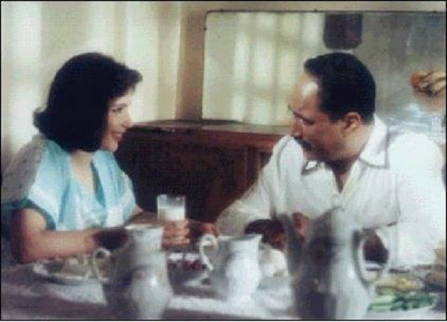 لقطة من فيلم ايام السادات تجمع الراحل احمد زكي و الفنانة مني زكي