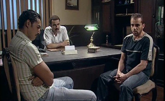 مشهد من مسلسل قلب ميت يظهر فيه محمد الشقنقيري، أحمد هارون، و صبحى خليل.