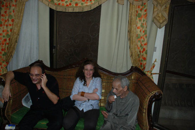 مشهد يجمع الشاعر أحمد فؤاد نجم بالمخرج عصام الشماع والمنتج الفنى نجلاء رشدي