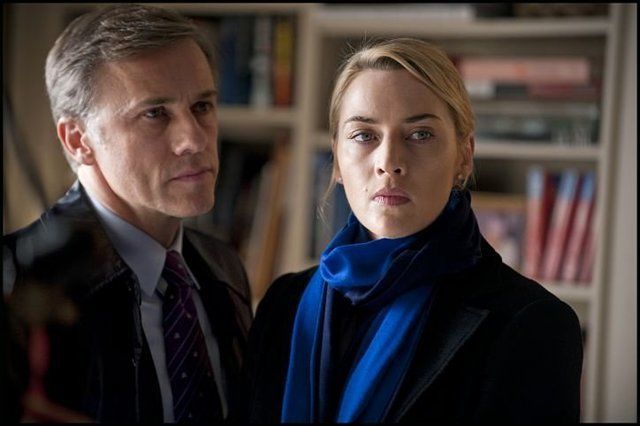 لقطة من مشهد من الفيلم تجمع بين كيت وينسلت و كريستوف والتز