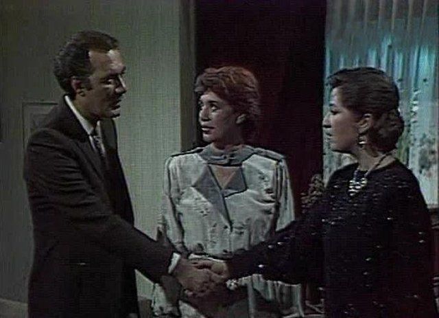 بوسى، محمود ياسين، و ناهد جبر فى لقطة من مسلسل "اللقاء الثانى".
