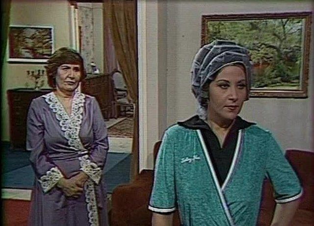 النجمة بوسى والفنانة القديرة نادية رفيق فى لقطة من مسلسل "اللقاء الثانى".