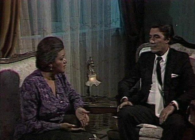 الفنانة القديرة نادية شمس الدين والنجم محمود ياسين فى لقطة من مسلسل "اللقاء الثانى".