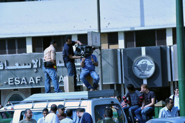 فريق عمل الفيلم فى أحد الشوارع لتصوير المشاهد الخارجية
