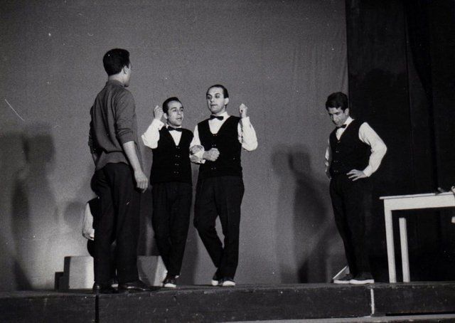 اثناء تصوير ، حكاية الرجل الذي صار كلباً - لتلفزيون موسكو ، 1971، قاسم محمد ( المخرج ) يجهز احد المشاهد التصوير .... صلاح القصب ، روميو يوسف وخليل عبد القادر وقاسم محمد.