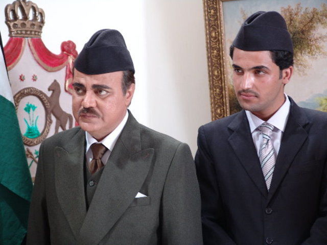عبد الخالق المختار ( جهة اليسار ) يؤدي شخصية الباشا نوري السعيد