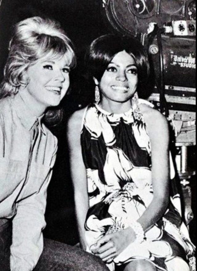 دوريس داى تجلس مع الممثلة ديانا روس فى كواليس العمل.