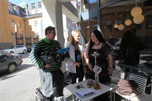 المخرجة نيفين شلبى اثناء اجرائها لقاء تليفزيونى لاحدى القنوات التليفزيونية بالنرويج