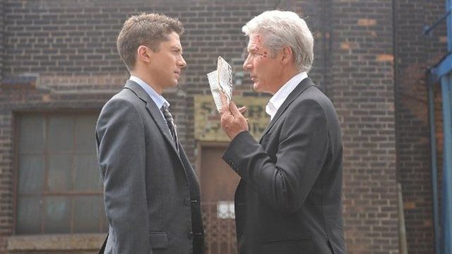 صورة لريتشارد جير أمام توفر جريس وهو يمسك بورقة أمام وجهه