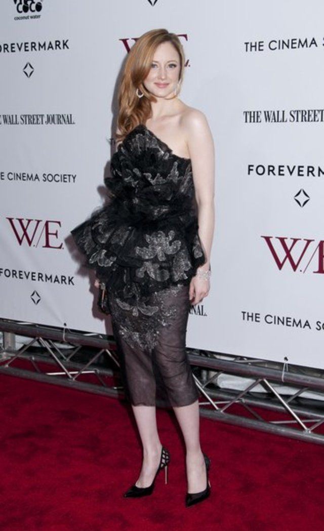 الممثلة أندريا ريسبورج في أثناء وصولها للعرض الأول لفيلمها W.E. في مدينة نيويورك