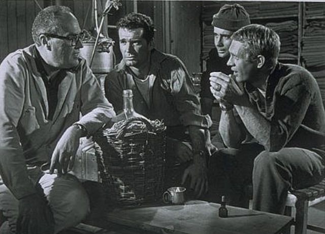 الأسرى الأمريكان يتناقشون مع المخرج فى اداء مشاهد الإحتفال بعيد استقلال أمريكا فى ٤ يوليو.