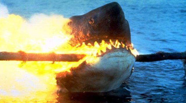 القرش المفترس يموت عن طريق كابل كهربائى وضعه الشرطى فى فكه .