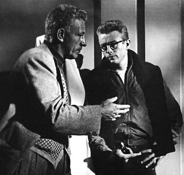 نيكولاس راي يشرح لجيمس دين المشهد المراد تصويره اثناء تصوير فيلم (ثائر بلا سبب)
