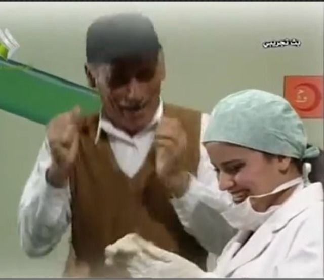 الفنانة عبير فريد و الفنان حاتم سلمان في مسلسل اشهى الموائد في مدينة القواعد تأليف مالك المطلبي و اخراج عماد عبد الهادي سنة 1999 العراق بغداد