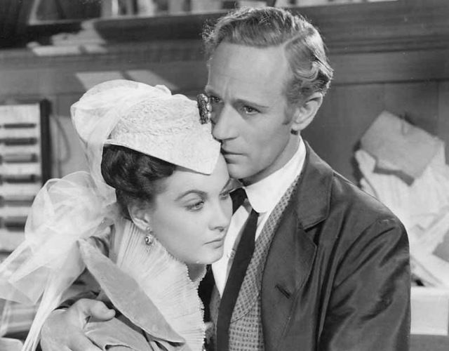 أشلى (ليزلى هوارد) فى لحظة ضعف أمام حبه السابق سكارليت (فيفيان لى).