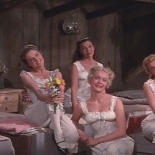 المزيدفى عام ١٨٥٠ وفى ولاية أوريجون يمتلك آدم بونتبى (Howard Keel) مزرعة منعزلة وهو يذهب للمدينة على فترات متباعدة، ومعه قائمة بما تحتاجه المزرعة من طلبات، وفى هذه المرة كان من بين...اقرأ المزيد الطلبات الملحة الحصول على زوجة، ليس من صفاتها الجمال فقط، ولكن ان تكون قوية ومحاربة، تقوى على الطبخ والتنظيف، وتحويل حظيرة المزرعة الى منزل حقيقى، يليق بحياة آدمية. وعثر آدم على ميللى (Jane Powell) التى تعمل فى بار، ورأى فيها القوة الكافية، والعزيمة لتحقيق مآربه، وقد وقع فى حبها من اول نظرة، وبادلته الشعور، وعرض عليها الزواج ووافقت، وسافرت معه آملة فى حياة بمنزل مستقل منعزل، ولكنها فوجئت ان لأدم ستة إخوة اصغر منه، بينجامين (Jeff Richards) وجيدون (Russ Tamblyn) و فرانك (Tommy Rall) و دانيل (Marc Platt) وكاليب (Matt Mattox) و أفرايم (Jacques d'Amboise)، وجميعهم يعيش فى حجرة واحدة، حياة بدائية غير مهذبة، وغير متطورة وهمجية، فجميعهم يعيش بالمزرعة المنعزلة ولم يرون المدينة. تولت ميللى تربيتهم من جديد، وتعليمهم النظافة وحسن الخلق، وكيفية كسب قلوب الآخرين، وكيفية معاملة الجنس الآخر. طمع الأخوة فى الزواج مثل آدم، والحصول على فتاة مناسبة، ويحضرون حفلا سنويا بالمدينة، ويلتقون بالفتيات، ويعثر كل منهم على فتاة أحلامه، ولكنهم يعودون لمزرعتهم مرة اخرى وحدهم. وفى الشتاء يقرأ عليهم آدم قصة الرومانى ورفاقه، الذين كانوا يخطفون زوجاتهم، فيقررون الذهاب للمدينة وخطف الفتيات، والعودة بهن للمزرعة من خلال ممر ضيق، بعد ان غطت الثلوج جميع الطرق، وبعد مرورهم تساقطت الثلوج فأغلقت الممر. ولامتهم ميللى على فعلتهم الهمجية، ولإستحالت عودة الفتيات قبل حلول الربيع وذوبان الثلوج، فقد قامت ميللى بإستضافتهن بالمنزل، ونقلت آدم وإخوته الى الحظيرة، وخلال فترة الشتاء حدثت أمور كثيرة بين الفتيات والشباب، وتعلموا الكثير من ميللى، وتهذبت أخلاقهم، حتى جاء الربيع وعادت الفتيات الى المدينه، وقام الشباب بخطبتهن، والزواج بهن، والعودة الى المزرعة، لبدأ حياة أدمية راقية من جديد (Seven Brides for Seven Brothers)