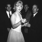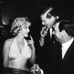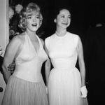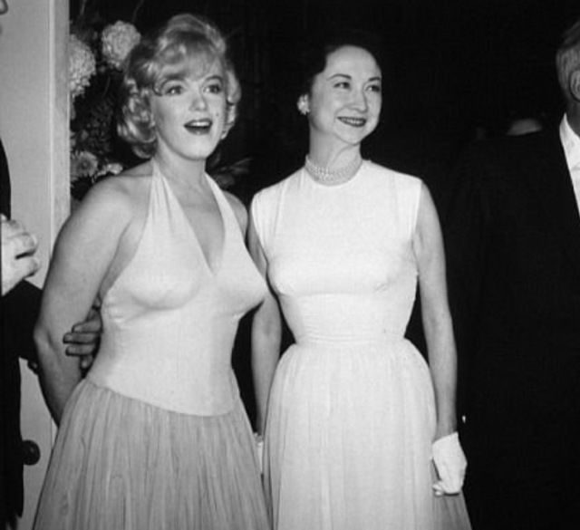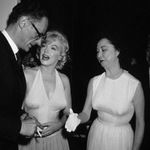 مارلين مونرو مع الصحفية دوروثى كيلجالين فى الحفل الدعائى لفيلم Let's Make Love 1969.