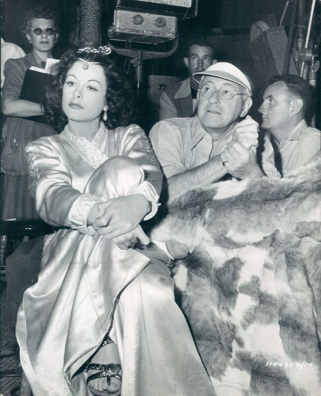 المخرج سيسيل دى ميل وهيدى لامار فى كواليس فيلم شمشون ودليلة ١٩٤٩.
