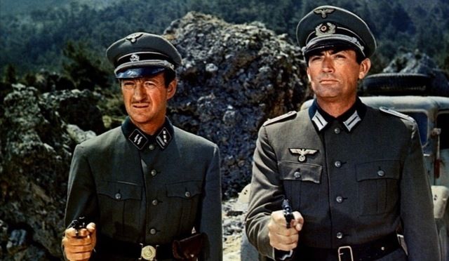 انتونى كوين و جريجورى بيك بعد ان استولوا على ملابس ضباط ألمان فى مشهد من الفيلم.