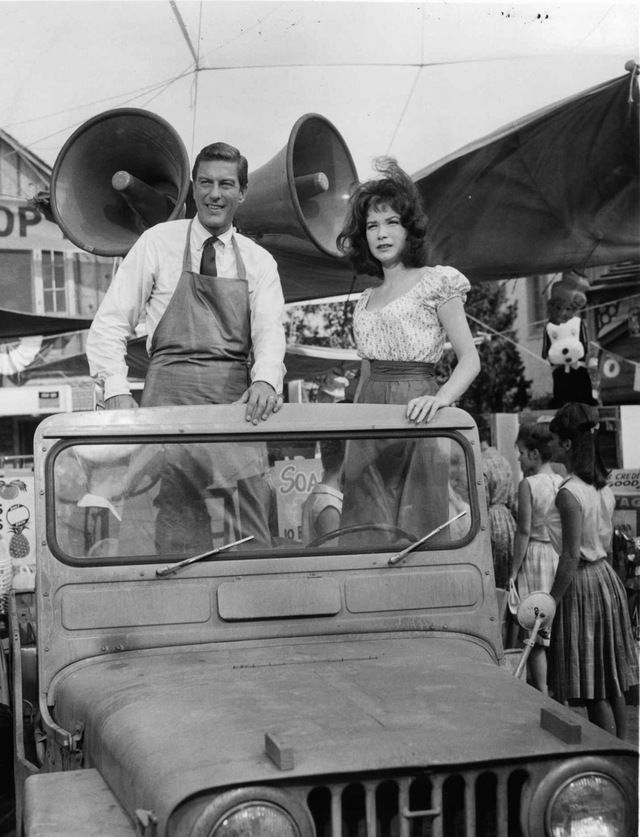 شيرلى ماكلين مع ديك فان دايك فى حملته الدعائية لمعرض لعب الاطفال الذى اصابه الكساد.