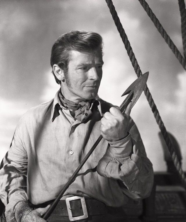 ريتشارد بيزهارت يستعرض الحربة التى سيصيب بها الحوت لإصطياده.