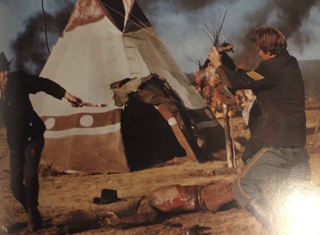 الجنود الأمريكين يقطعون رأس هندى ويلهون بها.