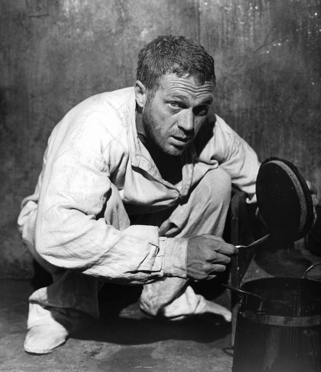 بابيلون يتناول كل مايقدم له من طعام فى السجن الإنفرادى حتى يقوى على التحمل.