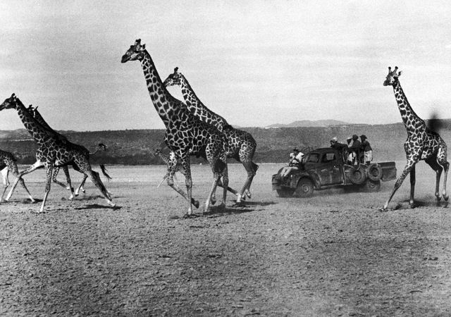 سيارة الصيد تطارد قطيع من الزراف.