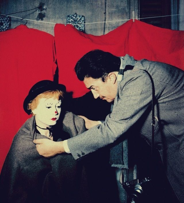 المخرج فيدريكو فيللى خلف الكاميرا مع زوجته بطلة الفيلم جيوليتا ماسينا.
