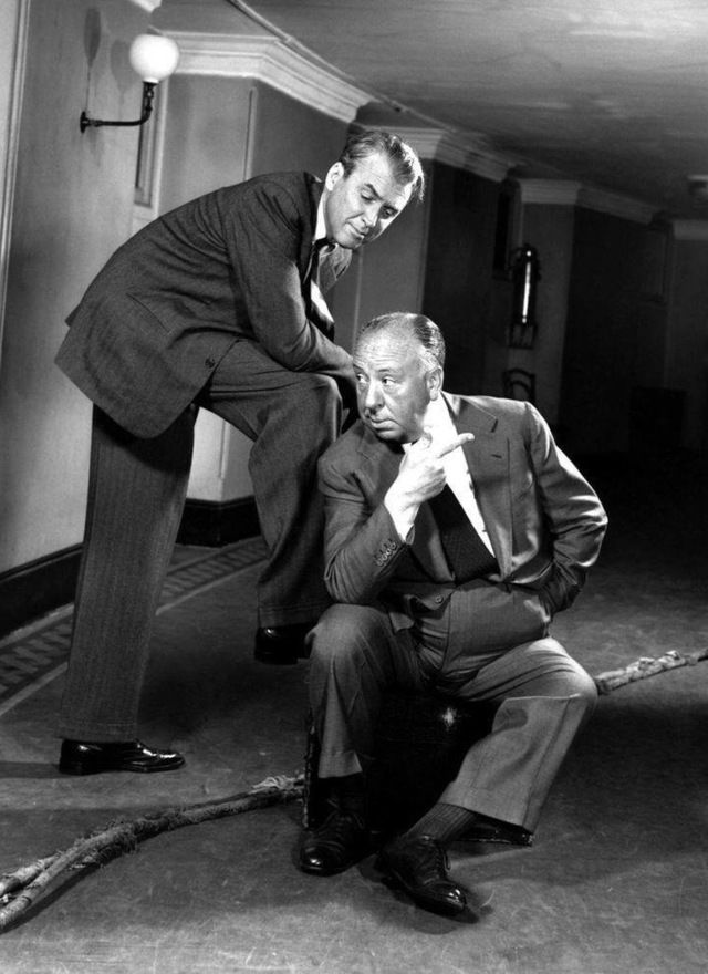 جيمس ستيوارت مع المخرج ألفريد هيتشكوك فى كواليس العمل.