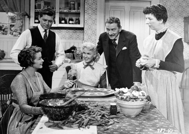 فى المطبخ روز مارى ديكامب تفصص البازلاء ومارى ويكس تقشر البصل بينما جلست دوريس داى تتناول كوبا من الماء، ووقف ليون آمز و جوردون ماكراى ينظران فى مشهد من الفيلم.