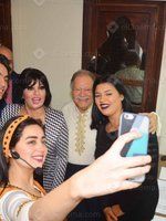 الفنانة فيفي عبده أثناء مشاركتها الجمهور مشاهدة مسرحية يحيى الفخراني (ليلة من ألف ليلة).