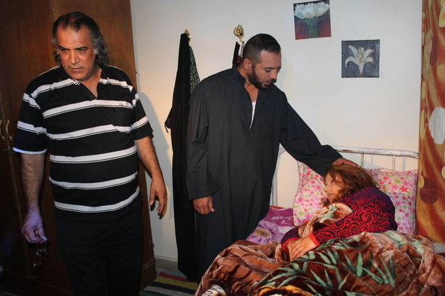 مشهد من مسلسل حرائق الرماد الفنانة عبير فريد و الفنان زمن علي والمخرج رضا المحمداوي
