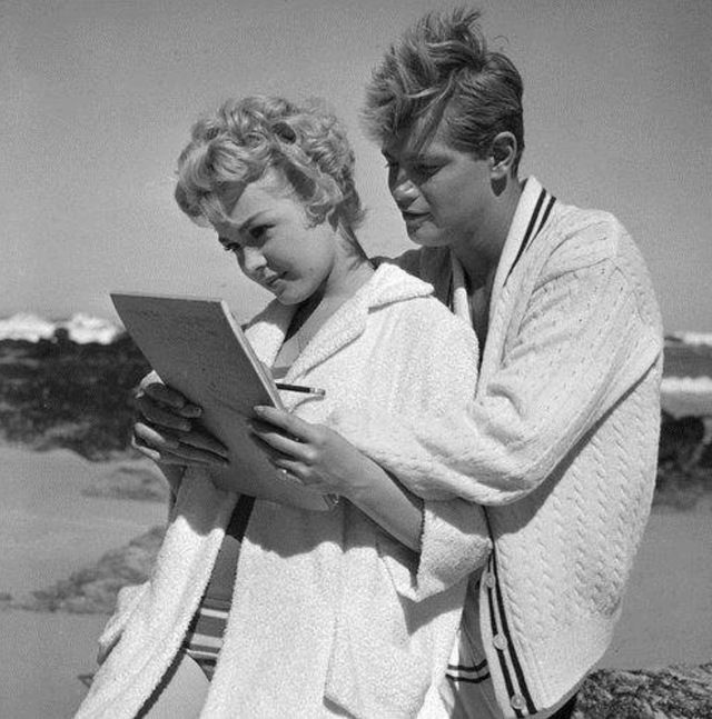 ساندرا دى مع تروى دوناهو خلف الكاميرا يراجعان أحد مشاهد العمل.