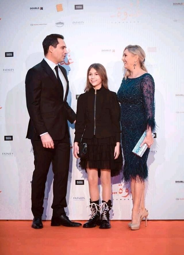 ظافر العابدين مع زوجته جوان وابنته ياسمين في العرض الأول لفيلم غدوة في تونس