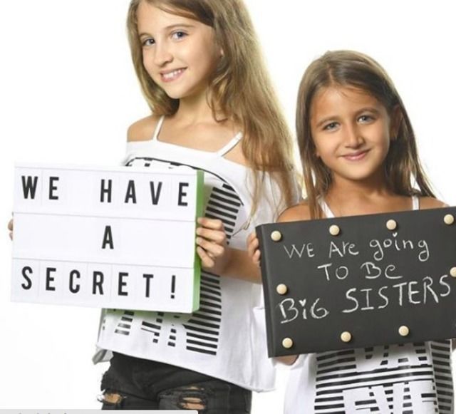 وحملت الفتاتان لافتتان مكتوب عليهاـ "لدينا سر، نحن بصدد أن نكون أختان كبيرتان"، فيما علقت نانسي على الصورة، حيث كتبت، "أمنيات ميلا وإيلا تحققت".